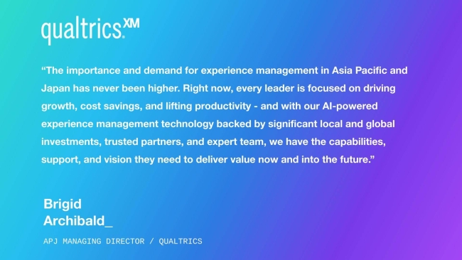 “As Qualtrics nears a decade of business in Asia Pacific and Japan, the importance and demand for experience management in the region has never been higher. Right now, every leader is focused on driving growth, cost savings, and lifting productivity – and with our AI-powered experience management technology backed by significant local and global investments, trusted partners, and expert team, we have the capabilities, support, and vision they need to deliver value now and into the future,” said Brigid Archibald, Managing Director for Qualtrics in Asia Pacific and Japan.