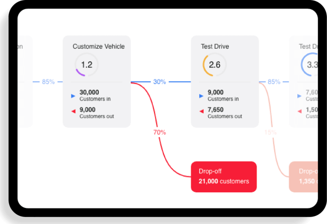 Customer Journey Optimizer creates a single omnichannel view of the entire customer journey to outline exactly what stage a customer is in, why and where an experience breakdown is happening, and the impact to the business, such as lost revenue or service cost. Journey analytics capabilities empower teams to drill deeper into the data to see how the issue is impacting different segments of customers and individuals across different channels and use pre-built integrations with existing systems to troubleshoot and orchestrate the best response to help customers reach their desired outcomes.