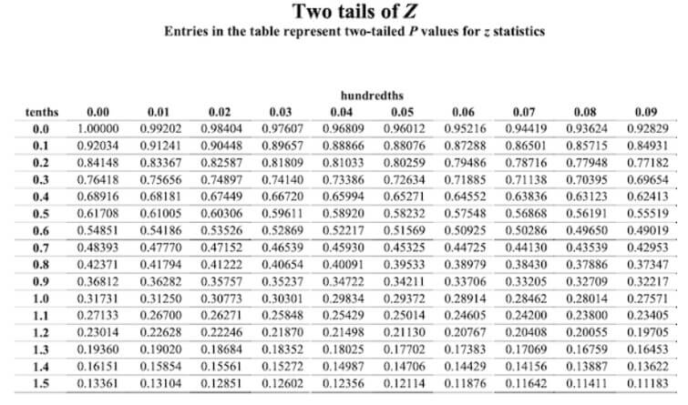 Die standardisierte Zufallsvariable, die es zur Berechnung der Irrtumswahrscheinlichkeit bedarf, lässt sich in der folgenden Tabelle nachschlagen:
