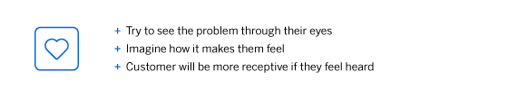 Behind every customer, a service call is a real human who has a question or concern that needs to be answered. The person needs to feel understood, heard and served. Active listening is a key skillset you can develop by practicing daily with your co-workers and family. First, you should approach each conversation to learn something and focus on the speaker. After the customer is finished speaking, ask clarifying questions to make sure you understand what they’re actually saying. Finally, finish the conversation with a quick summary to ensure everyone is on the same page.