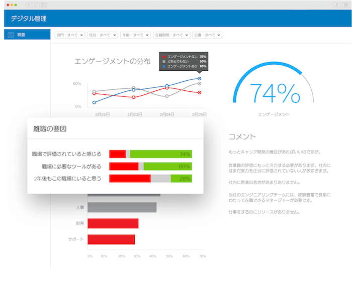 - 従業員エンゲージメントレベルを定期的に評価し、パターンを特定して意欲やモチベーションを向上させる戦略を導入します