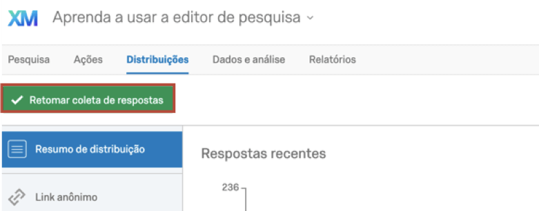 - Clique em Retomar a coleta de respostas.