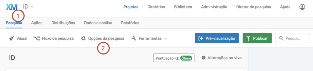 Embora a Qualtrics permita editar uma pesquisa depois de ser distribuída, recomendamos não fazer edições depois de começar a coletar as respostas, pois isso pode invalidar os dados coletados. Se precisar editar uma pesquisa ativa (por exemplo, uma que está coletando respostas), dê uma olhada em nossa página de Testando e editando uma pesquisa ativa (EN) para saber quais mudanças podem ser feitas sem invalidar os dados.