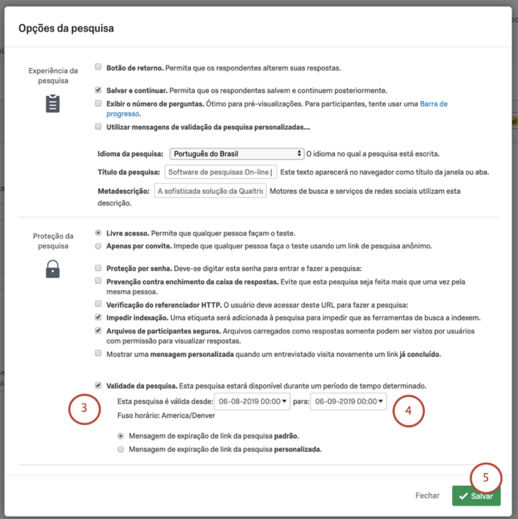 Configurando a Data de Validade da Pesquisa