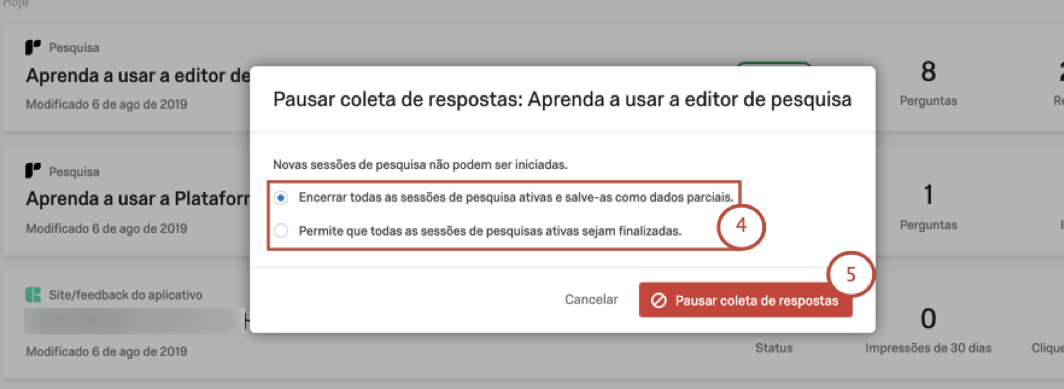 - Clique em Pausar coleta de respostas para confirmar.