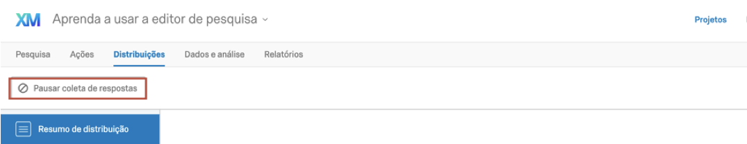 - Vá para a guia de Distribuições e clique em Pausar a coleta de respostas.