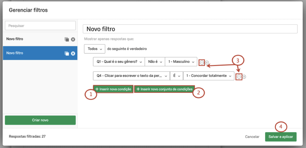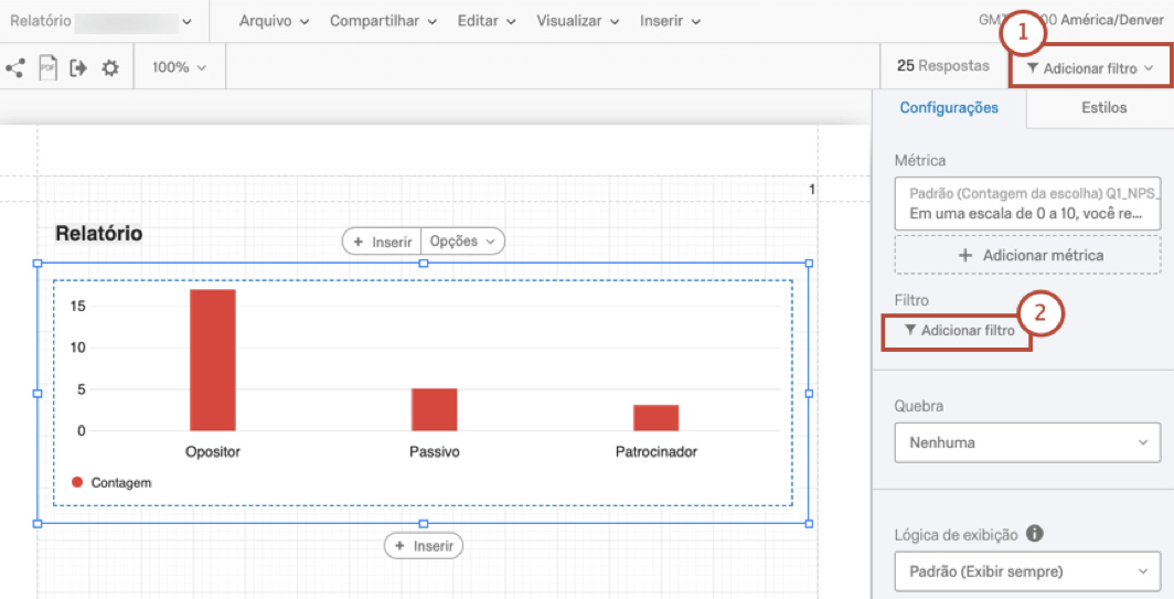 - Adicionar filtro: Adicione quantos filtros forem necessários.