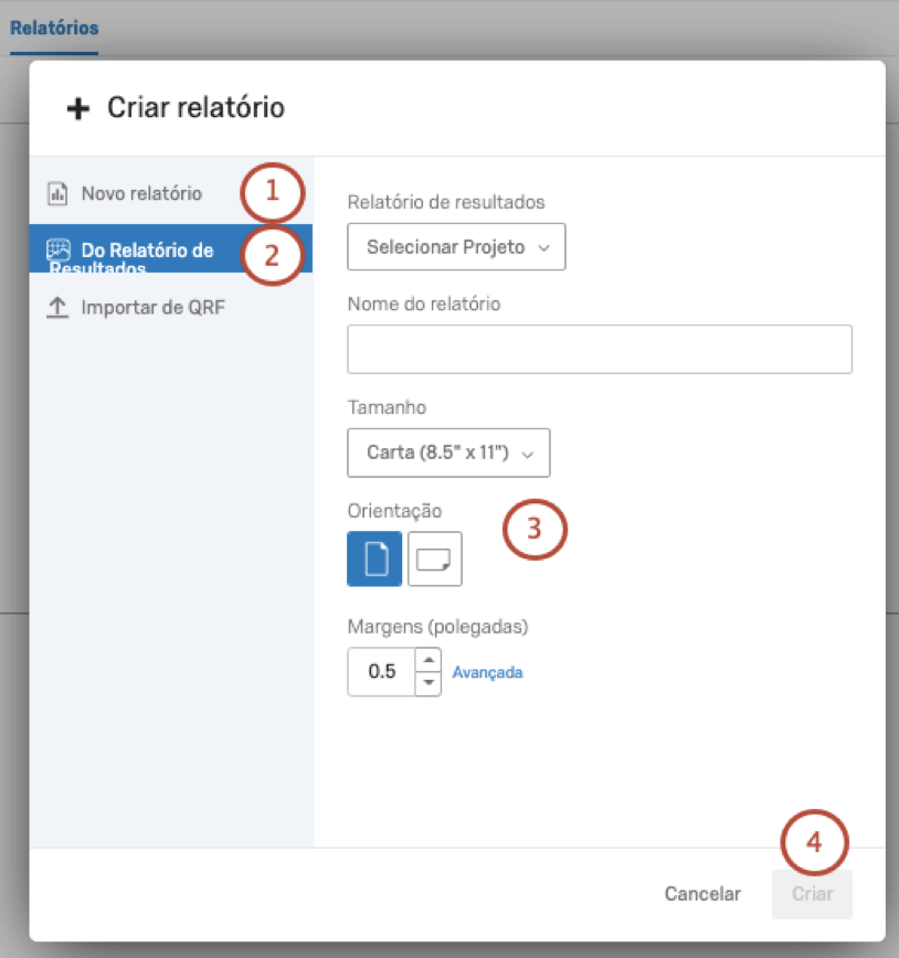 Você deve escolher entre duas opções (Novo relatório ou Do Relatório de Resultados):