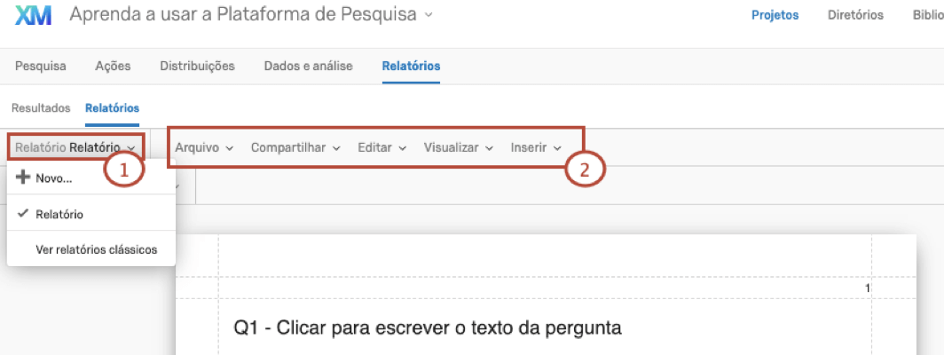 - Compartilhando um relatório público: A maneira mais fácil de compartilhar um Relatório avançado com pessoas que não usam a Qualtrics é por meio de um link público gerado a partir de Compartilhar > Gerenciar relatório público