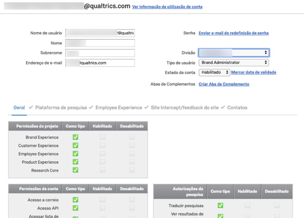 - Acessar pesquisas: Uma permissão antiga da Qualtrics que não é mais usada.