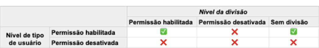 Às vezes você pode se perguntar como as permissões de divisão e usuário interagem umas com as outras. Esta seção explicará como essas interações funcionam.