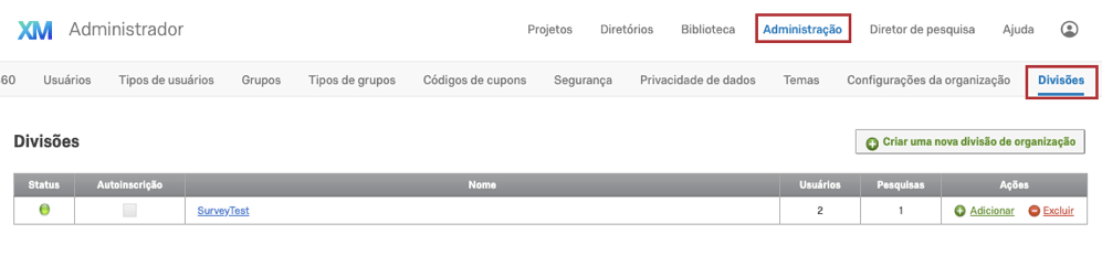 - Administrador da marca (EN): Você pode gerenciar todas as contas licenciadas da Qualtrics da sua organização.