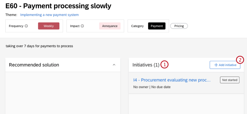 Once an initiative has been created, you can click on it to view and edit its details, including updating the status.