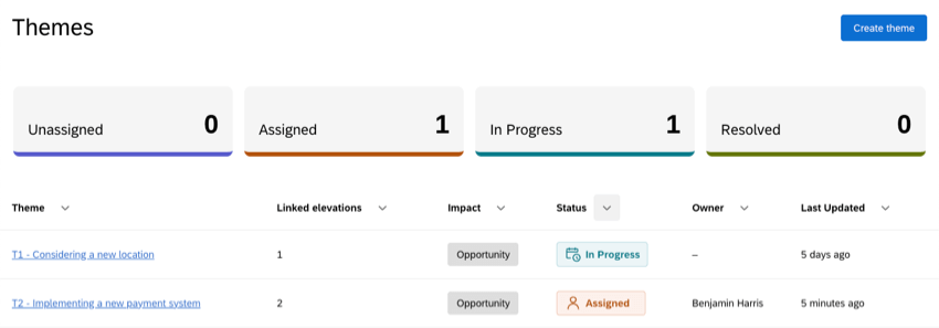 - Assigned: A specific owner is assigned to the theme.