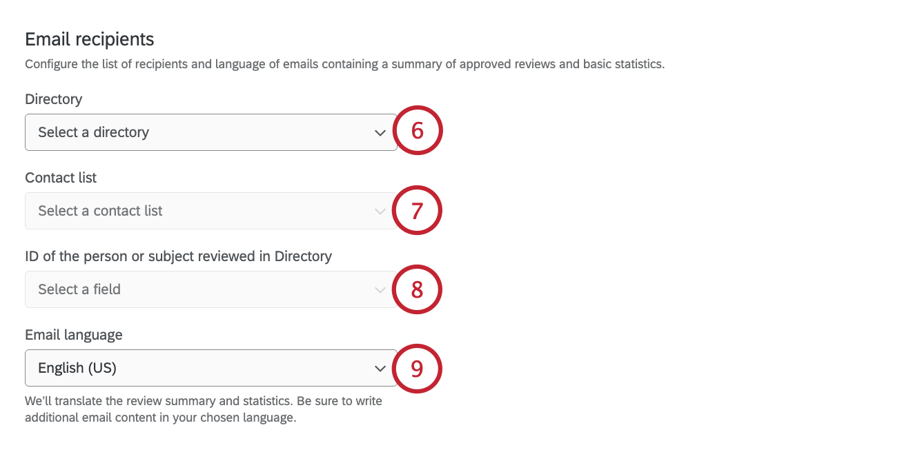 - Select the Email language, which will be used to translate the email’s default summary and statistics. All emails will be sent in the language you select here.