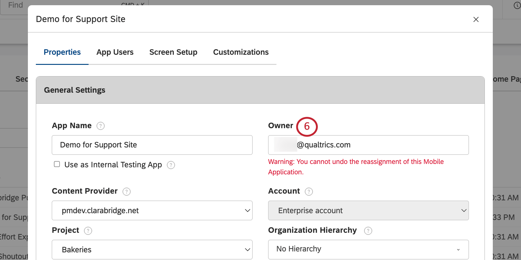 - Geben Sie die E-Mail-Adresse des neuen Verantwortlichen in das Feld Eigentümer ein.