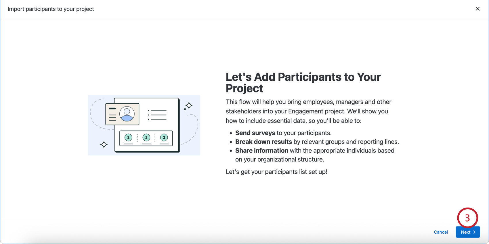 Qtip: This option is only available in fresh Engagement projects that have not yet imported any participants. Removing participants from an existing project will not give access to the guided flow.