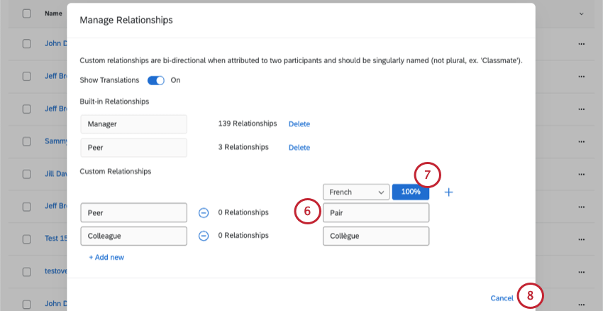 - If you’d like to have your relationships translated automatically, click the percentage sign.