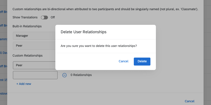 - There are two different ways to delete custom relationships, depending on whether the relationship has already been used in a 360 project.