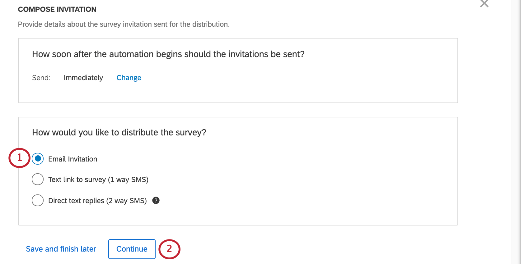 Legacy survey distribution automations allowed you to set up a scheduled survey distribution to a mailing list or a sample of a mailing list. This same functionality can be achieved with the Email task or Send Survey via Text Message (SMS) task within workflows. Follow the steps below to create a workflow that automatically distributes a survey to your contacts.