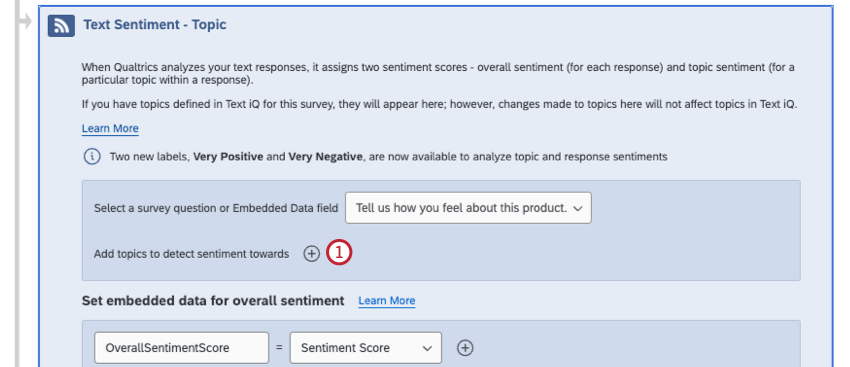 - Quando si dice Aggiungi argomenti per rilevare l’analisi del sentiment, fare clic sul segno più ( + ).