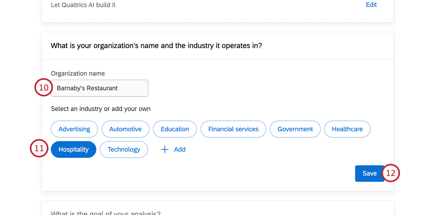 Qtip: If your industry isn’t listed here, you can click “Add” and then specify your industry in the text box.