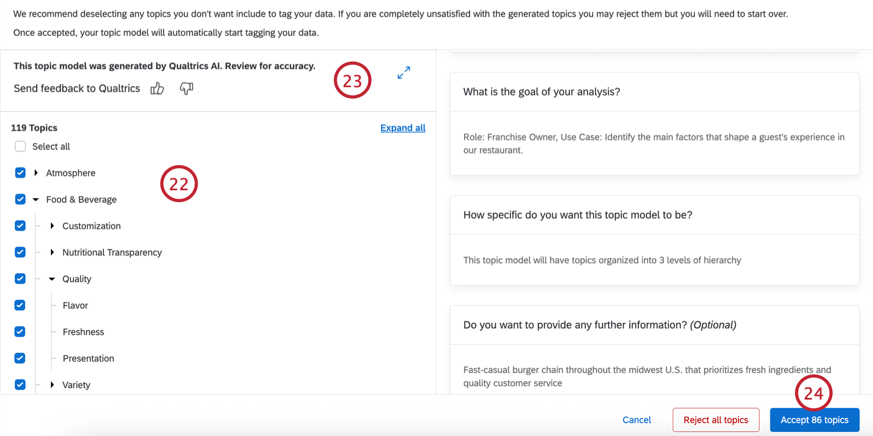 - If desired, you can deselect any topics you do not want to include in your new model.