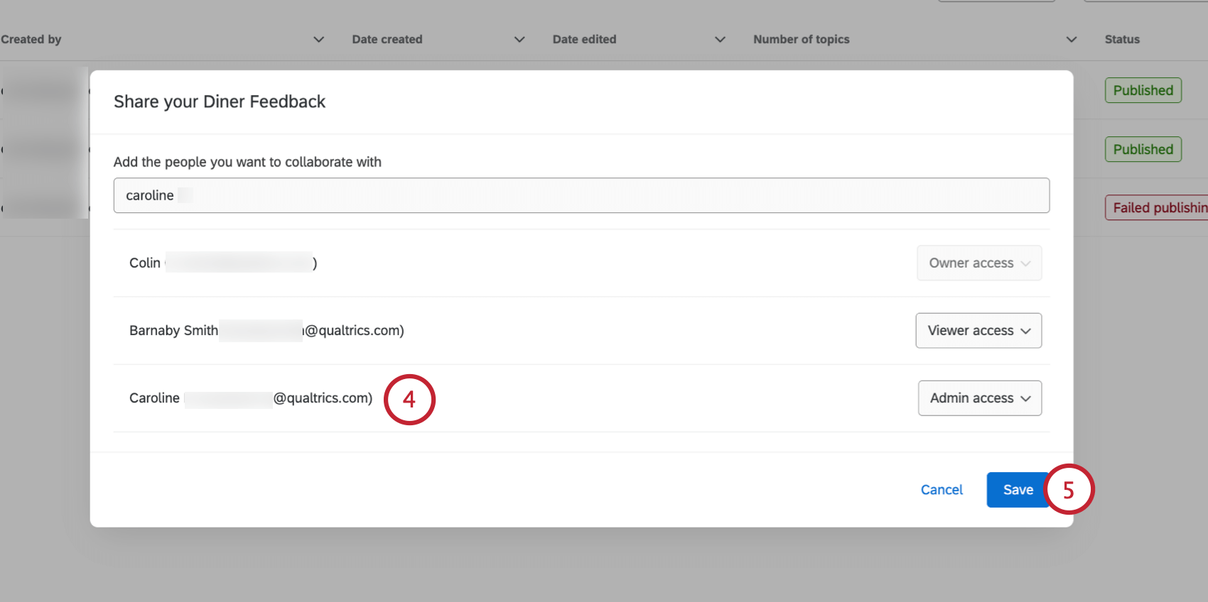 - Collaborate: Share your model with other users in your Qualtrics license. See Sharing a Topic Model for more information.
