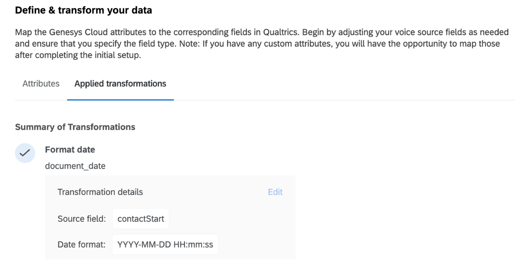 - Applied transformations: Here you can view transformations that have been applied to your attributes.