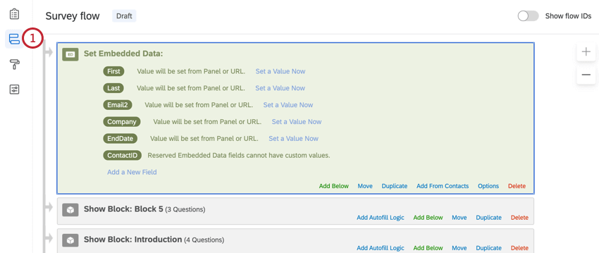 1. In the Survey tab, navigate to the Survey flow.