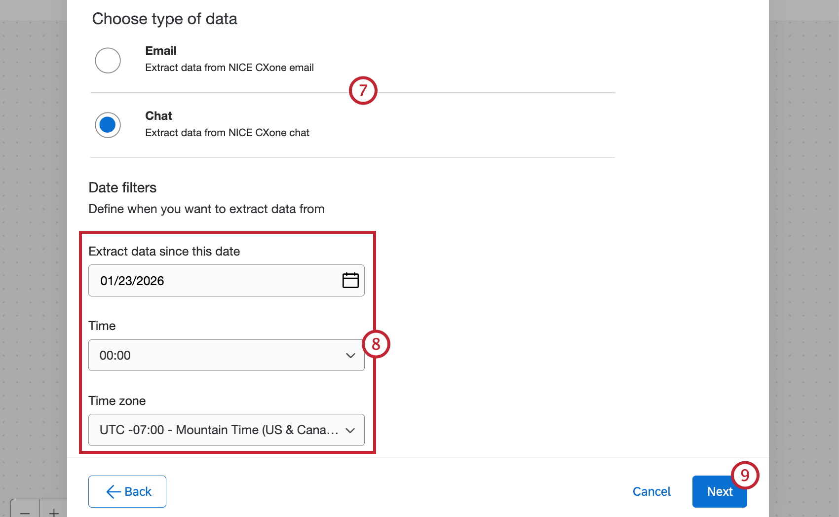 The Extract Data from NICE CXone task allows you to extract chat and email data from NICE CXone and bring that data into Qualtrics. You can then use Qualtrics to analyze your data. This allows you to efficiently derive insights on customer sentiment and agent performance.