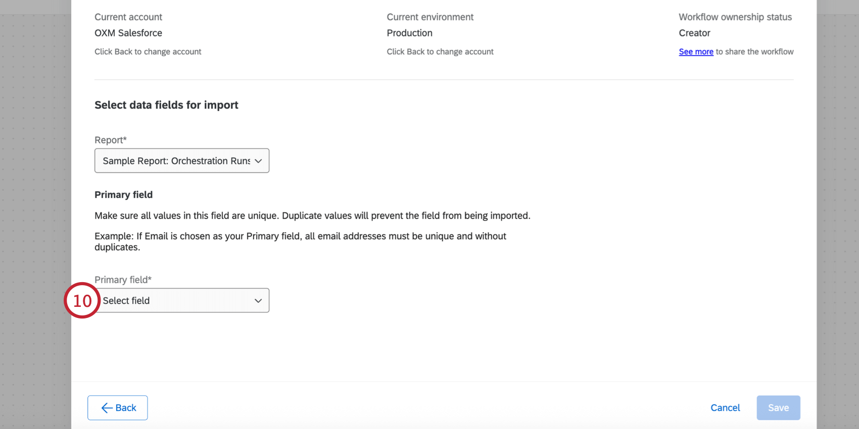 - Select a Primary field for the import. All values for this field should be unique since this field is used to prevent duplicate data.
