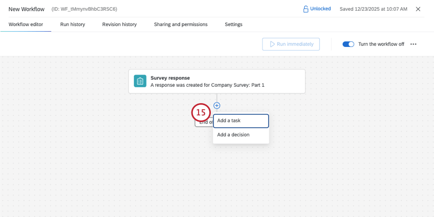 - Send survey via email task: Distribute the second half of a study to the participant based on days / months since they finished the first half. Remember, although you’re linking to the second survey, you must add this task to the first survey!