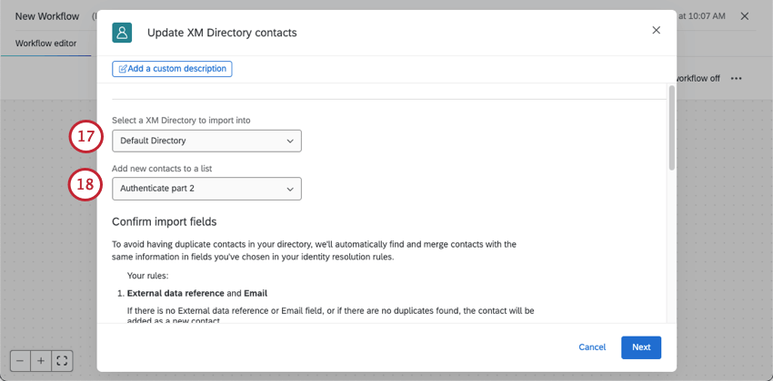 - Because this solution allows respondents to change information, we recommend creating another workflow to save the updated contact information to your directory. That way, if you need this information in a different survey for the future, the contact is already up-to-date.